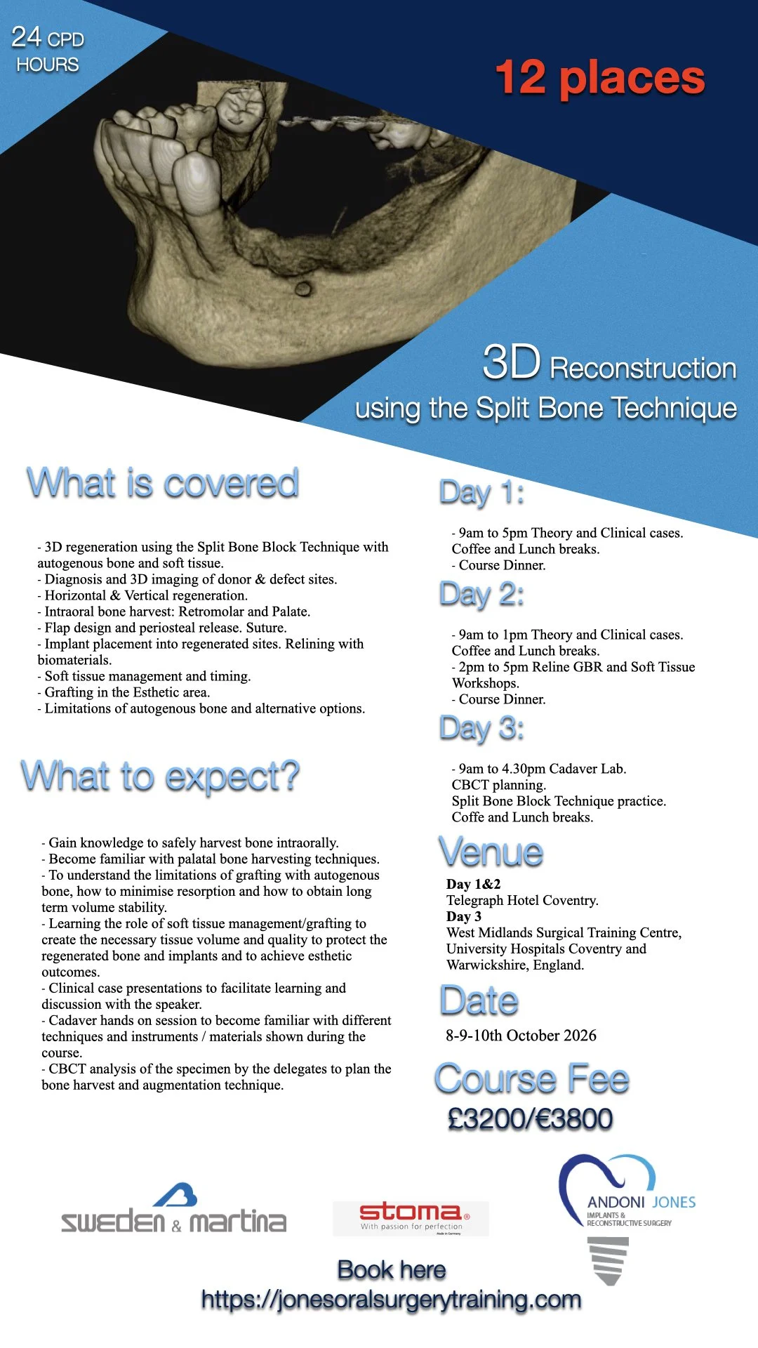 3 day intensive course to take your understanding and hands-on experience on the Split Bone Block Technique to the next level.